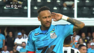 Neymar cai em provocação dos botafoguenses durante jogo entre Santos e Botafogo, e vira meme