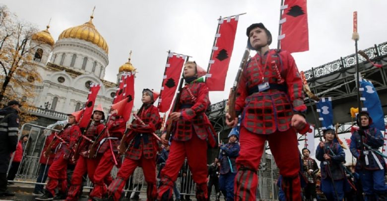 Com bandeiras, os jovens, principalmente universitários moscovitas, caminharam diante do público formado em sua maioria por pessoas mais velhas.