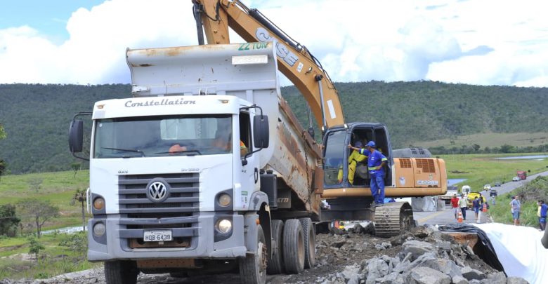 As obras na GO-118 vão continuar. Hoje, mais de 30 caminhões e carretas seguem na locomoção do material de uma pedreira que fica em Planaltina de Goiás até o trecho, um trajeto de 200 quilômetros.